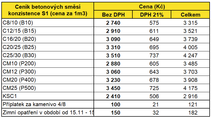 Pozn.: Uvedené ceny jsou bez DPH