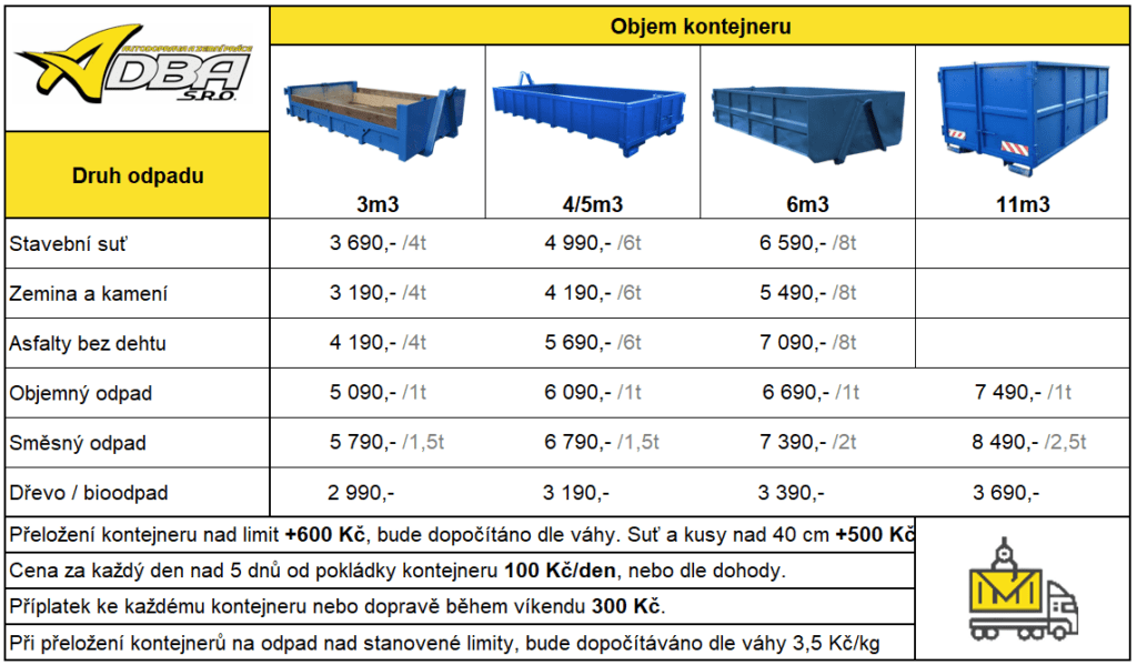 *Těžký – dřevěné skříně, sádrokarton, ocelové prvky, okna, dveře, ostatní těžký odpad